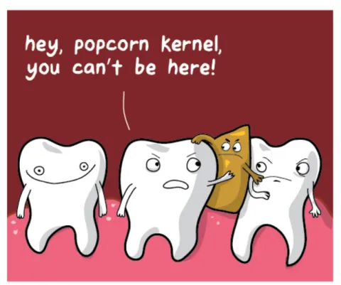 When something gets stuck between your teeth, it can become rather painful and could lead to infection. It’s got to come out pronto. Risk of cavities or infection increases significantly after the first 72 hours. Try to get it out with some floss. If that hurts too much, you could also try something like Soft Picks for a gentler approach. If all else fails, you’re going to want to call the dentist.